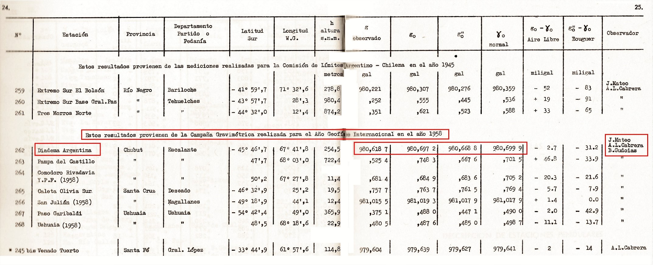 Ahí se muestra que el histórico 9.8 o 9.81 que usábamos en física, en Diadema anda en 9.806 y algo. O por lo menos andaba en esos valores en 1958. Esto gracias especialmente a los nunca suficientemente recordados J. Mateo, A. L. Cabrera y B. Gudoias, héroes de la física aplicada en Diadema Argentina.
