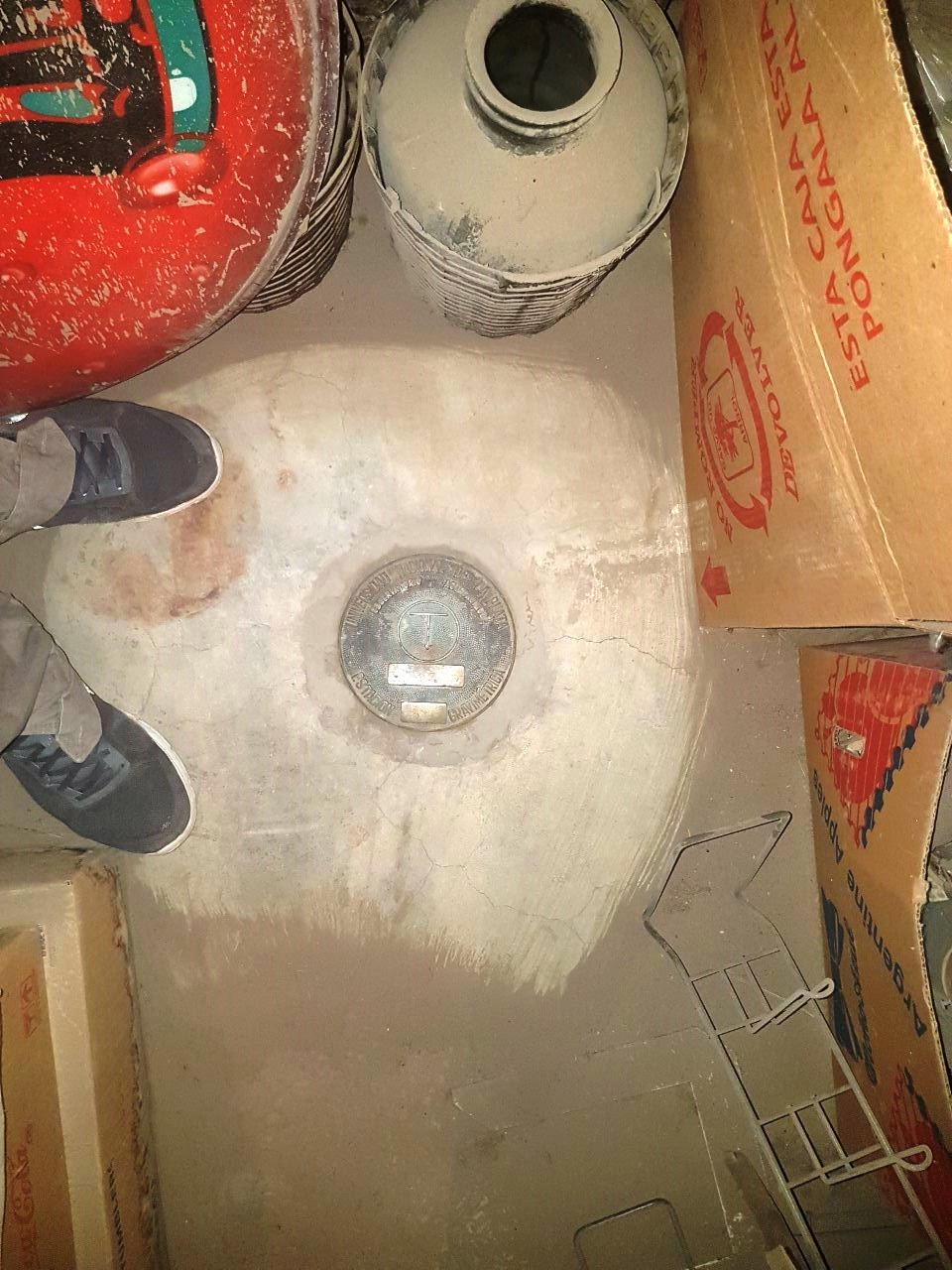 Fuimos hasta el fondo, bajamos al sótano, y me mostró la placa, debajo de la escalera.